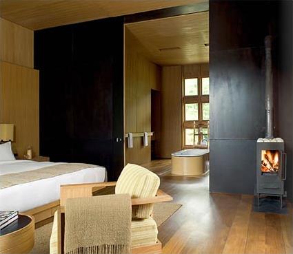 Les 24 suites sont semblables : design naturel, intérieur en bois avec un lit « king size » et une salle de bain de granit.