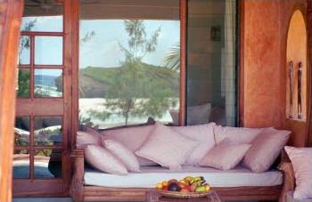 Chaque chambre décorée d'objets provenant de l'artisanat local dispose d'un grand lit à baldaquins, et d'un balcon ou d'une terrasse avec vue sur la somptueuse baie préservée de Watamu.