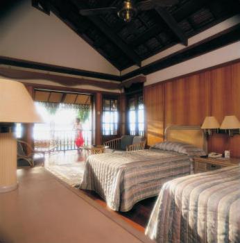 L'hôtel dispose de 350 chambres réparties dans des bungalows en bois.