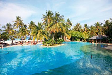 Situé sur la magnifique île de Nalaguraidhoo, ce Resort et ses fleurs tropicales, ses jardins, son lagon bleu saphir, ses plages immaculées vont capturer votre coeur. De trés beaux bungalows, une vue imprenable sur l'Océan, une cuisine trés variée, des services de qualité, mais aussi la rencontre avec les Dauphins, la pêche traditionnelle, le golf et tout un programme festif feront de votre séjour un moment exceptionnel.