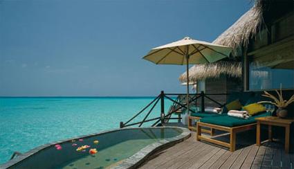 12 villas lagon, sur pilotis, parmi les plus belles des Maldives, avec salle de bains luxueuse et petit bassin privé.