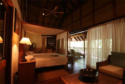 3 Hideaway Villas (58m2+ 22m2 de balcon + 20m2 de jardin privé). Le mobilier en rotin se marie parfaitement au bois local brut de l'intérieur.