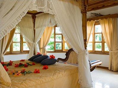 Au nord-est de La Digue, à l'Anse Patates, La Digue Island Lodge : 18 chalets nichés à flanc de colline, face à la mer et aux îles Coco, Félicité, Grande Soeur et Petite Soeur.