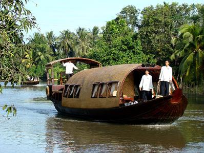 Le sampan est un lieu de vie flottant, constitué de bambous arrondis sur son toit. C'est 18 m de long de bois conduit par un équipage qualifié de 4 personnes qui vous accompagneront pendant votre séjour. Le milieu de vie est très confortable : une ou 2 chambres avec un grand lit, une couette et un ventilateur. Un cabinet de toilette et une douche à l'arrière. Vous serez très confortable pour profiter et observer la faune et la flore durant votre séjour sur le fleuve. L'équipage saura vous guider et aura plaisir à vous faire découvrir leur environnement dépaysant.
